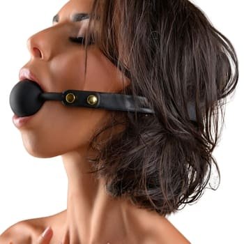 The ball should be placed gently in the mouth to prevent speech, intensifying the feeling of control and submission.